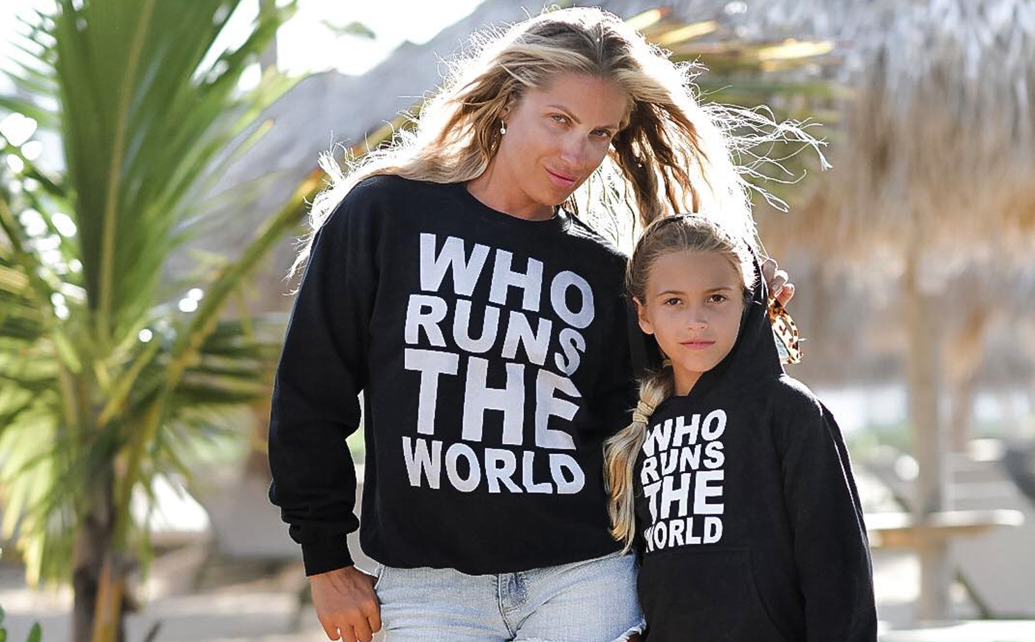This tee the future is female in the hot pink rocks! I get compliments by tons of women and men whenever I wear it. Fits true to size and very versatile pair with jeans or girlstrong leggings. A show stopper for sure!